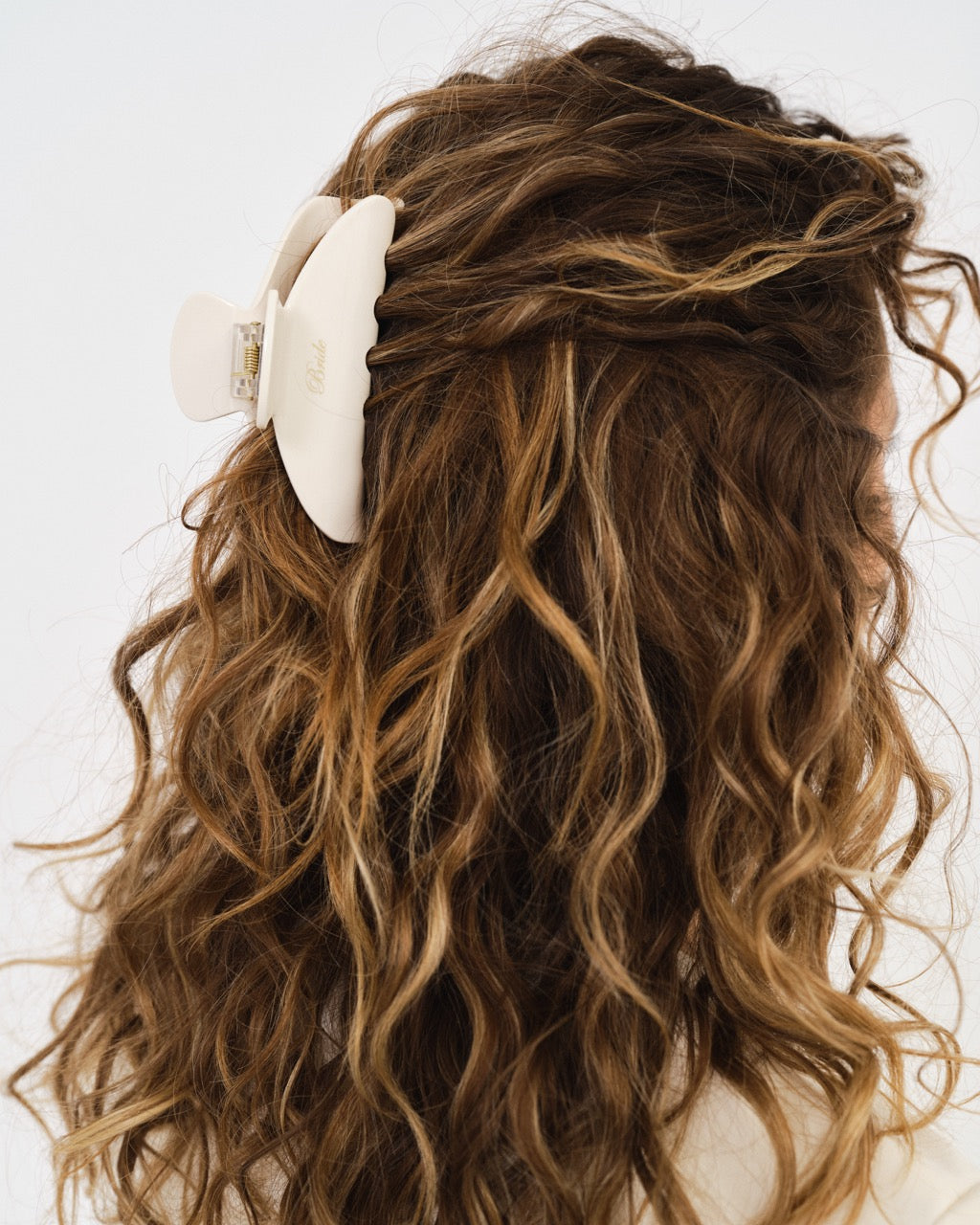 Chic and practical, this ivory claw clip holds your hair securely while adding a sweet bridal touch with the word “bride” delicately inscribed in elegant script—perfect for getting-ready hair or honeymoon lounging. - Bridal Satin Sleep Mask
