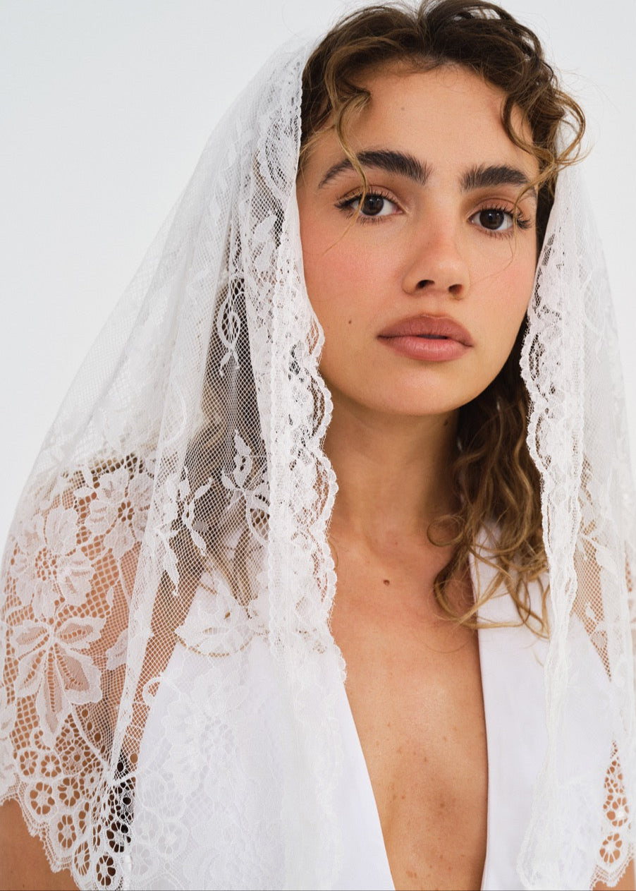 The Lucinda Mini Veil is one of our most beloved accessories—crafted to elevate your bachelorette, elopement or wedding day ensemble with refined romance. Thoughtfully designed with intricate, delicate lace, this veil lends a touch of ethereal charm and femininity - creating both a classic and contemporary bridal style.